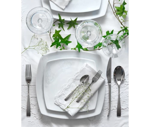 - Το σετ περιλαμβάνει: 12 πιρούνια φαγητού, 12 κουτάλια φαγητού, 12 μαχαίρια φαγητού, 12 πιρούνια γλυκού, 12 κουτάλια γλυκού και πλήρες σετ από 12 εξαρτήματα σερβιρίσματος