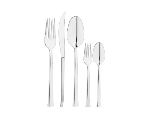 - Το σετ περιλαμβάνει: 12 πιρούνια φαγητού, 12 κουτάλια φαγητού, 12 μαχαίρια φαγητού, 12 πιρούνια γλυκού, 12 κουτάλια γλυκού, 12 κουτάλια μόκας, 3 σκεύη σερβιρίσματος
