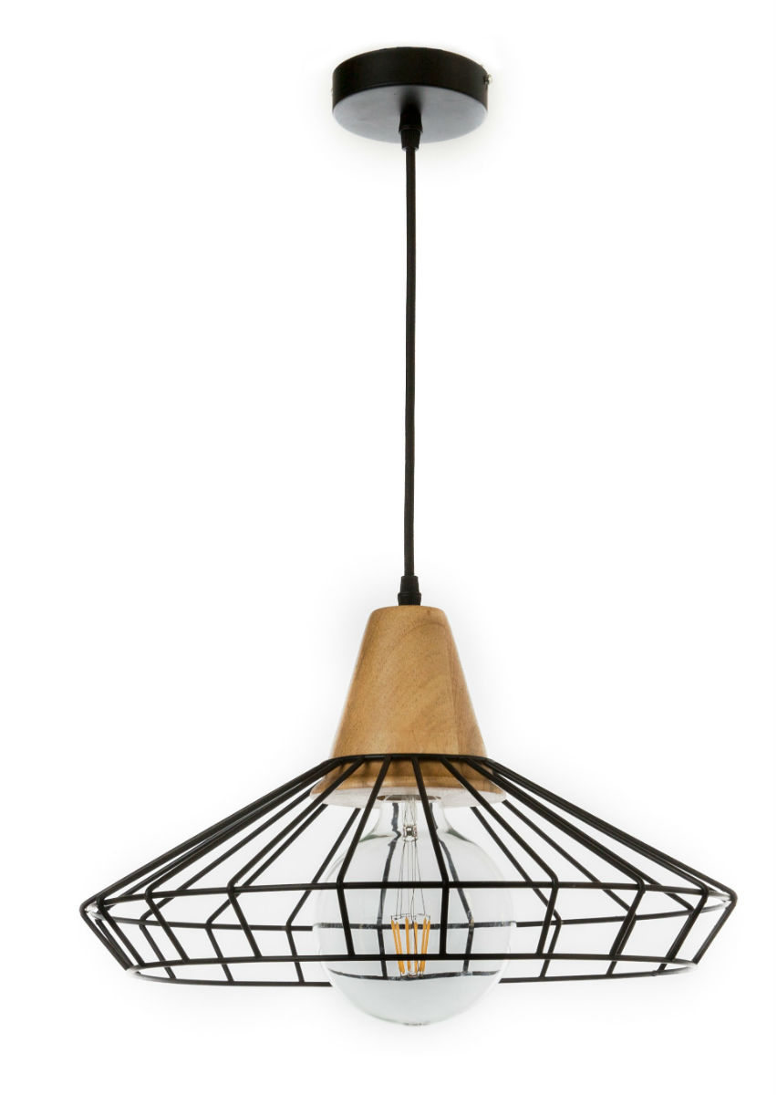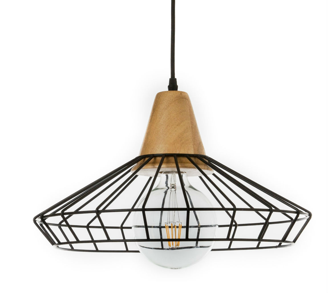 - Μεταλλικό φωτιστικό με λεπτομέρειες ξύλου