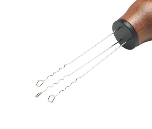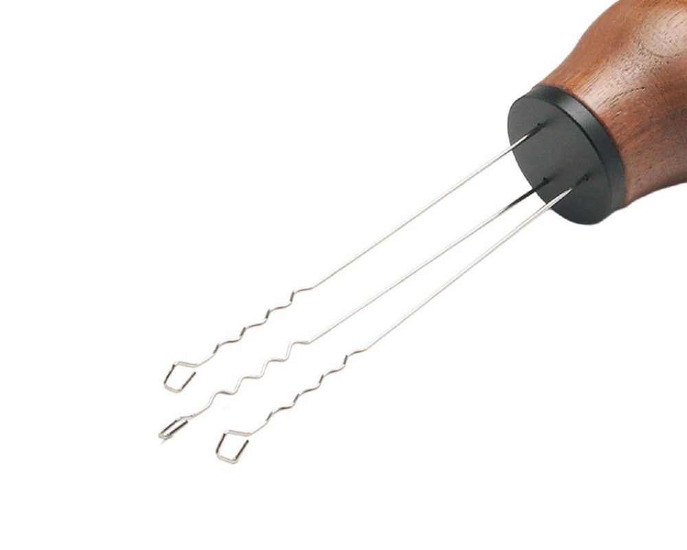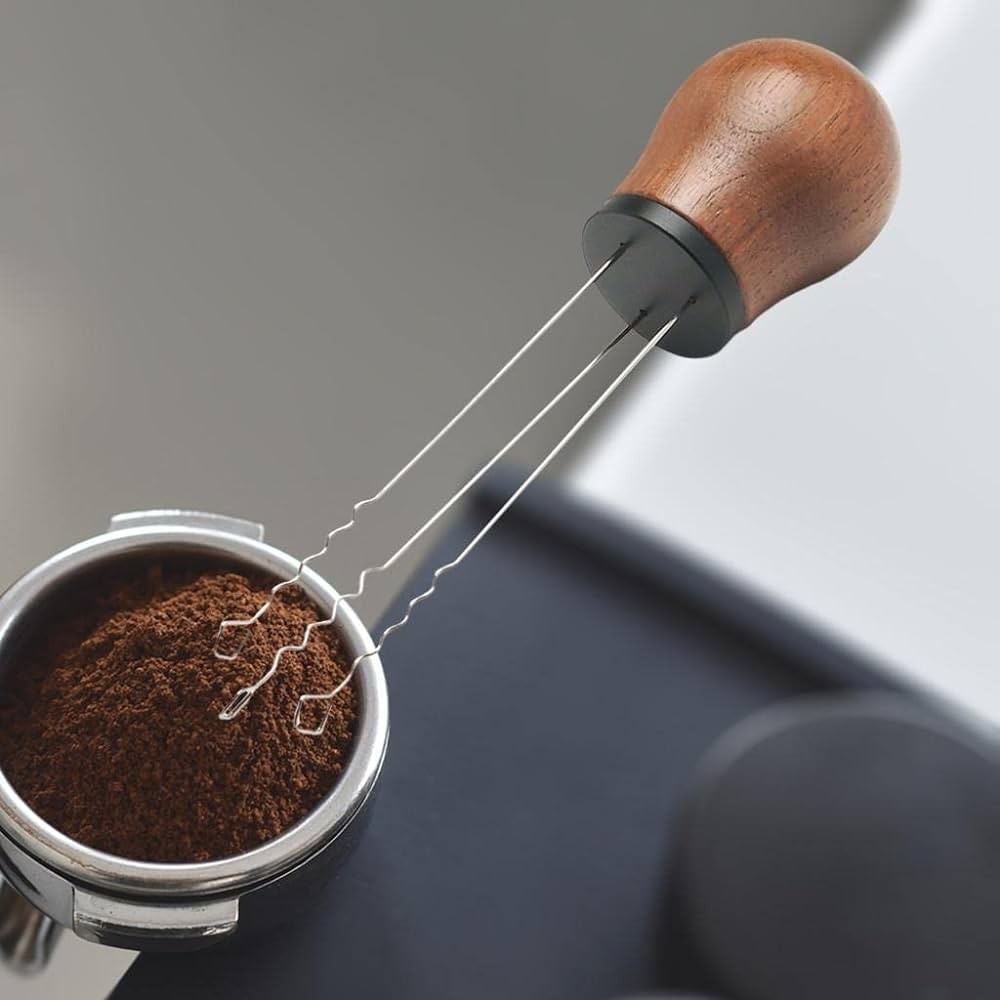 - Περιστρέφοντας τις μεταλλικές βελόνες εξασφαλίζουμε καλύτερη και περισσότερο ομοιόμορφη κατανομή του καφέ στο κλείστρο προετοιμάζοντας την διαδικασία ταμποναρίσματος και εκχύλισης