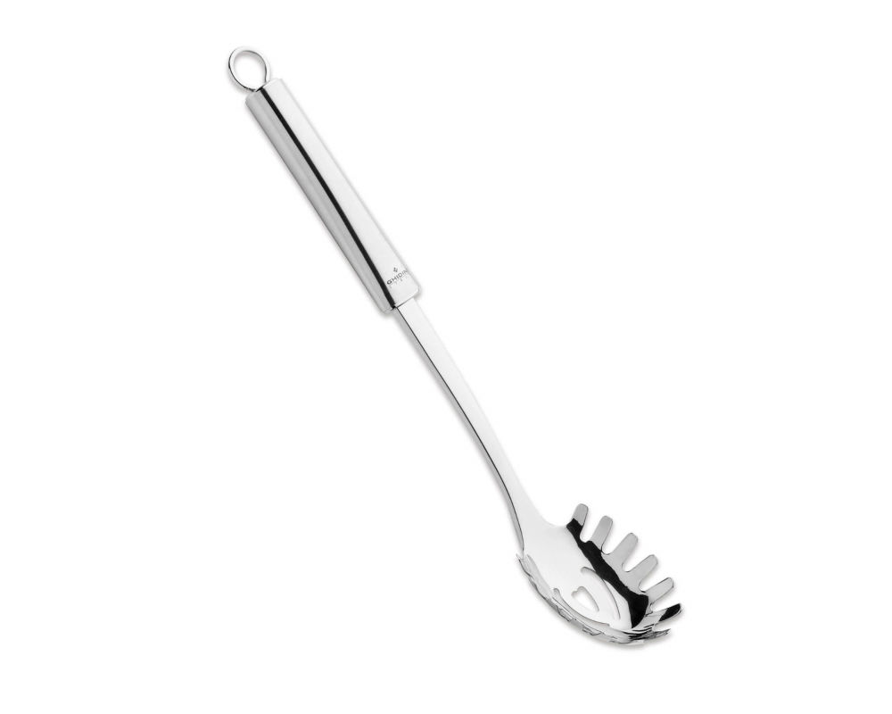 Κατασκευασμένη από υψηλής ποιότητας ανοξείδωτο ατσάλι, αυτή η κουτάλα είναι φτιαγμένη για να διαρκέσει. Δεν λυγίζει υπό το βάρος των ζυμαρικών, αντέχει στις υψηλές θερμοκρασίες και δεν επηρεάζεται από τις σάλτσες. Ο ειδικός σχεδιασμός της με τα "δόντια" στην περίμετρο αγκαλιάζει τα μακριά ζυμαρικά, όπως τα σπαγγέτι και τα λιγκουίνι, επιτρέποντας το σερβίρισμα χωρίς να γλιστρούν. Η κεντρική οπή βοηθά στο γρήγορο στράγγισμα του νερού.