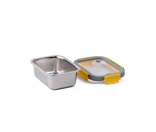 - Το σώμα του φαγητοδοχείου κατασκευάζεται από ανοξείδωτο ατσάλι, το καπάκι από ανθεκτικό άθραυστο γυαλί και πλαστικό BPA free