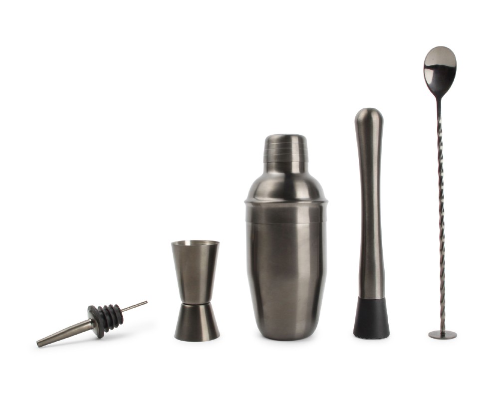 - Το σετ αποτελείται από: σέικερ με στόμιο συγκράτησής πάγου και καπάκι, αναδευτήρα κοκτέιλ, μεζούρα 25 και 50 ml, γουδοχέρι για αρωματικά βότανα και στόμιο σερβιρίσματος φιάλης