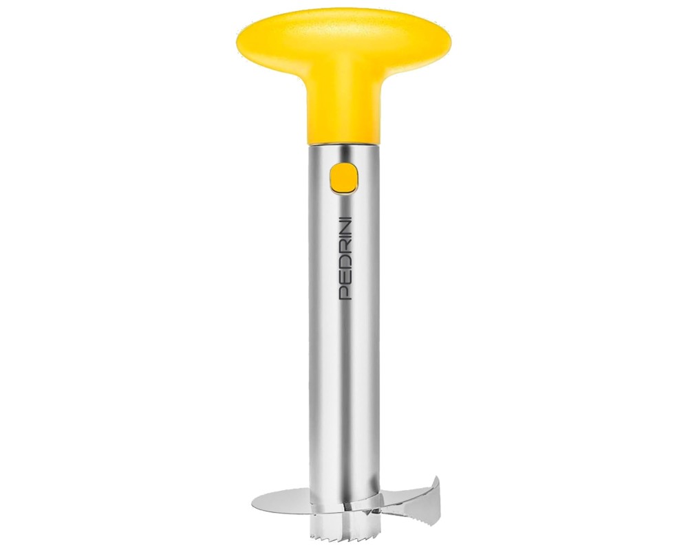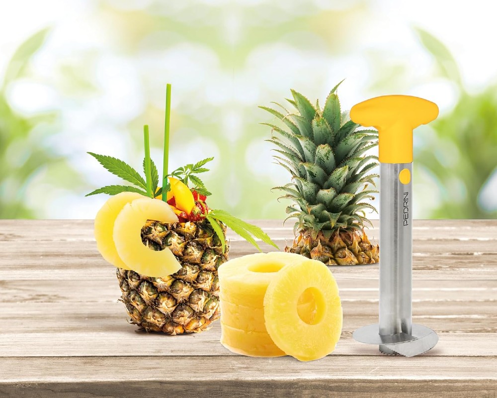 Ο ανοξείδωτος αποφλοιωτής ανανά Pedrini 04GD177 κάνει το καθάρισμα και το κόψιμο του ανανά πιο εύκολο από ποτέ. Με εργονομική λαβή και κοφτερή ανοξείδωτη λεπίδα, αφαιρεί τον πυρήνα και δημιουργεί τέλειες ομοιόμορφες φέτες σε λίγα δευτερόλεπτα - χωρίς κόπο και χωρίς σπατάλη καρπού.