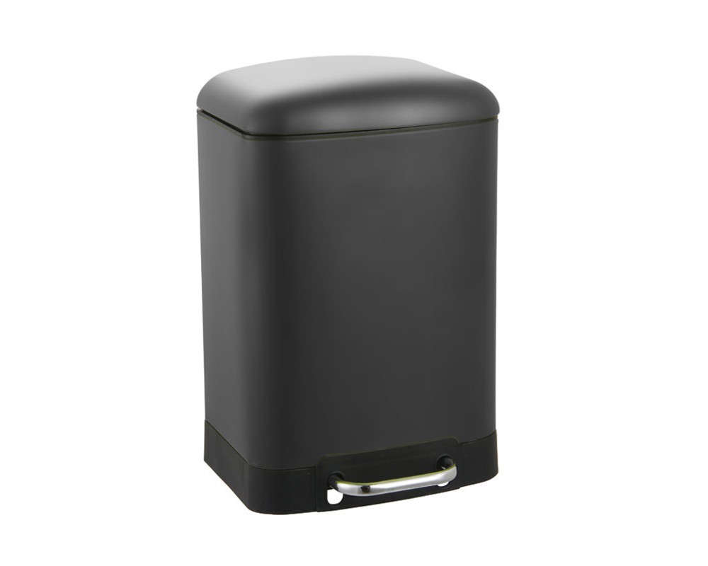 - Κάδος απορριμμάτων ανοξείδωτος σε μαύρο ματ χρώμα, τετράγωνος και καπάκι με αυτόματο κλείσιμο
