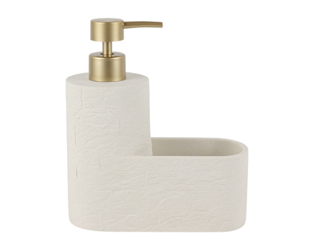 - Dispenser υγρού σαπουνιού από ανθεκτικό πολυεστερικό υλικό σε μπεζ χρώμα με φυσική υφή πέτρας