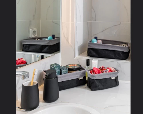 Ανανεώστε τον χώρο του μπάνιου σας με την κομψή αντλία σαπουνιού Estia Fjord. Ο μοντέρνος σχεδιασμός και το έντονο μαύρο χρώμα της την καθιστούν μια υπέροχη προσθήκη σε κάθε διακόσμηση. Κατασκευασμένη από υψηλής ποιότητας υλικό, είναι ιδανική για να φιλοξενεί το υγρό σαπούνι σας, προσφέροντας παράλληλα ευκολία στη χρήση. Συνδυάστε την με τα υπόλοιπα αξεσουάρ της σειράς Fjord για ένα πλήρες και αρμονικό αποτέλεσμα.