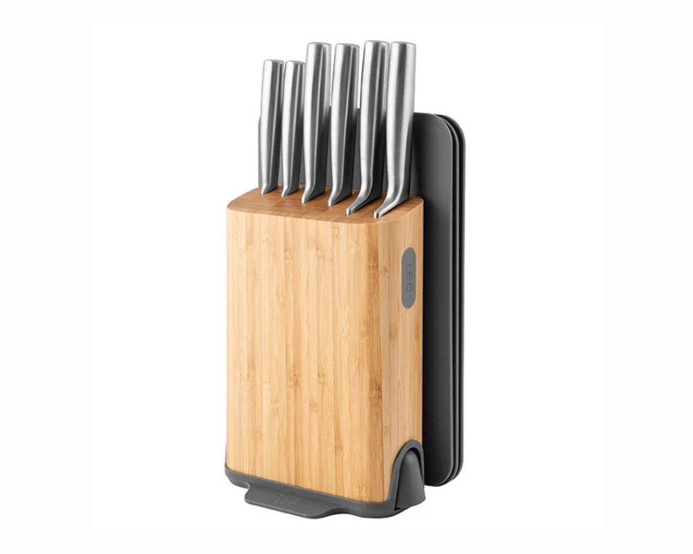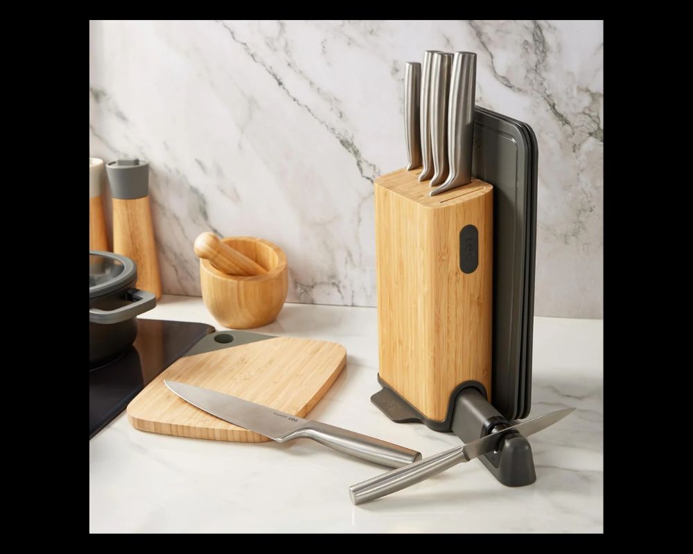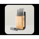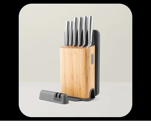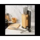 Αυτό το ευέλικτο σετ περιλαμβάνει όλα τα απαραίτητα μαχαίρια, κατασκευασμένα από κορυφαίας ποιότητας ανοξείδωτο ατσάλι με εργονομικές, κούφιες λαβές για άνετο και ισορροπημένο κράτημα. Η πανέμορφη ξύλινη βάση από μπαμπού δεν αποθηκεύει απλώς τα μαχαίρια σας, αλλά διαθέτει: