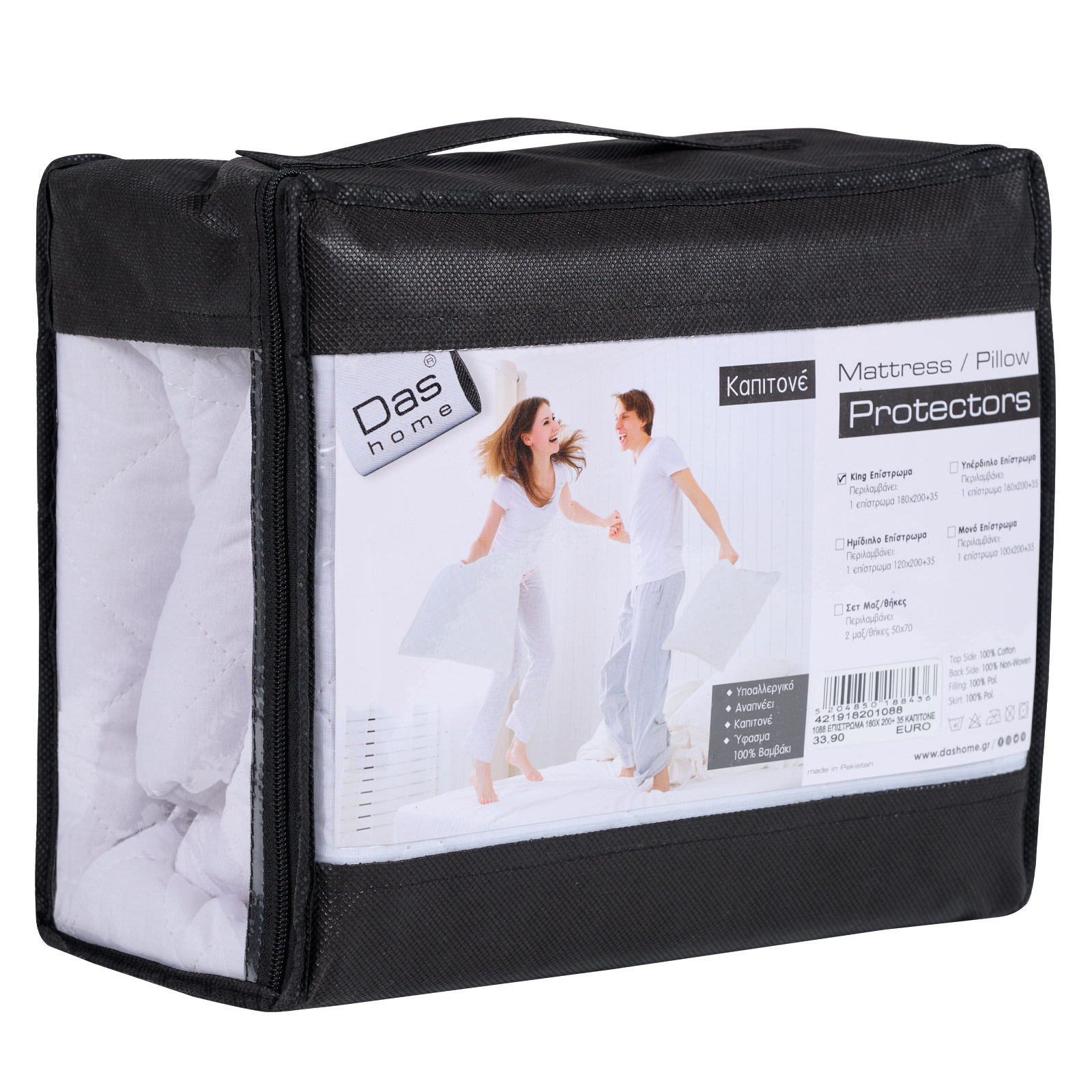 Προστατεύστε το στρώμα σας από σκόνη και λεκέδες και δημιουργήστε ένα καθαρό περιβάλλον για τον ύπνο σας. Επίστρωμα από ύφασμα καπιτονέ βαμβακερό προκειμένου να επιτρέπει τη φυσική αναπνοή του σώματος. Το εσωτερικό του από υψηλής ποιότητας Hollowfiber, ενώ είναι από non-woven για άνεση και προστασία. Διατίθεται σε διάσταση 180x200+35cm.Σύνθεση: 100% Βαμβάκι. Επίστρωση: πολυεστερική βάτα. Kάτω μέρος: non-woven