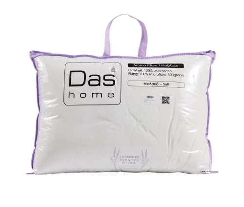Αρωματικό μαξιλάρι με εκχύλισμα lavender της σειράς Comfort. Το εξωτερικό ύφασμα είναι από 100% pol., ενώ το εσωτερικό γέμισμα αποτελείται 100% από ίνες microfibre, βάρους 800 γραμμαρίων. Είναι υποαλλεργικό, μαλακής σκληρότητας και διατίθεται σε διάσταση 50X70εκ. Das home...makes your house a home!