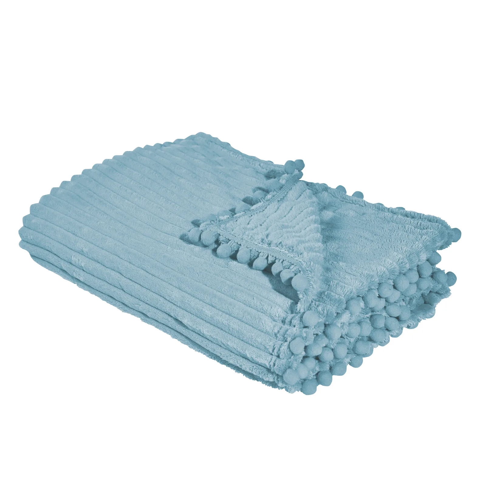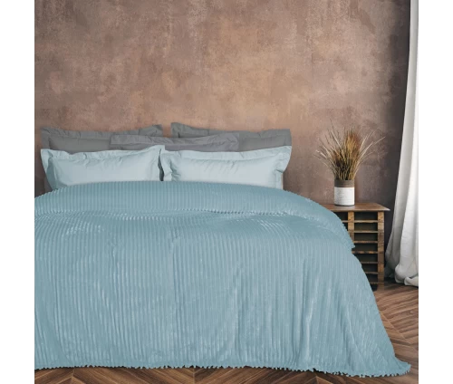 Κουβέρτα μονόχρωμη fleece με πομ-πομ. Είναι απο 100% polyester με βάρος 330gr/m², υποαλλεργική, ζεστή, με ιδιαίτερα απαλή υφή και μεγάλη αντοχή. Διατίθεται σε διάσταση 220X240εκ. Das home...makes your house a home!