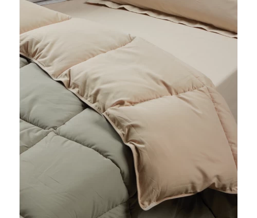 Πάπλωμα δύο όψεων με περιμετρικό ρέλι, της σειράς Happy. Το ύφασμα του είναι υποαλλεργικό από 100% microfibre ενώ το εσωτερικό του γέμισμα είναι από 100% hollowfiber, ιδιαίτερα απαλό και ζεστό με θερμότητα 10.5 Tog και βάρος 550gr/m². Διατίθεται σε διάσταση 160Χ220εκ. Das home...makes your house a home!
