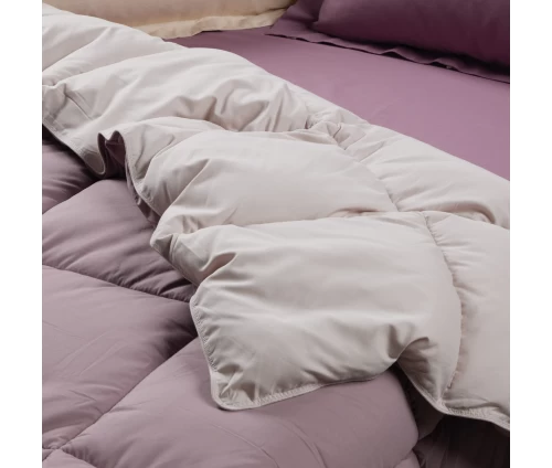 Πάπλωμα δύο όψεων με περιμετρικό ρέλι, της σειράς Happy. Το ύφασμα του είναι υποαλλεργικό από 100% microfibre ενώ το εσωτερικό του γέμισμα είναι από 100% hollowfiber, ιδιαίτερα απαλό και ζεστό με θερμότητα 10.5 Tog και βάρος 550gr/m². Διατίθεται σε διάσταση 220Χ240εκ. Das home...makes your house a home!