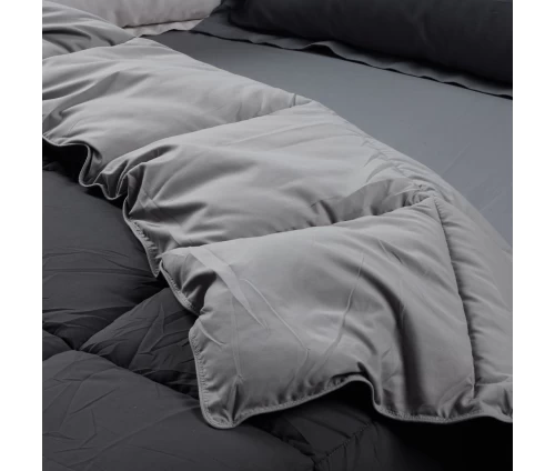Πάπλωμα δύο όψεων με περιμετρικό ρέλι, της σειράς Happy. Το ύφασμα του είναι υποαλλεργικό από 100% microfibre ενώ το εσωτερικό του γέμισμα είναι από 100% hollowfiber, ιδιαίτερα απαλό και ζεστό με θερμότητα 10.5 Tog και βάρος 550gr/m². Διατίθεται σε διάσταση 220Χ240εκ. Das home...makes your house a home!