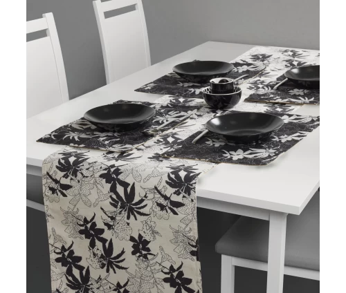 Σετ κουζίνας 5 τεμαχίων Das home, εμπριμέ. Το ύφασμα είναι από 20% linen και 80% pol., υποαλλεργικό και πολύ ανθεκτικό στη χρήση. Το σετ αποτελείται από 1 runner 45x180εκ και 4 σουπλά 30x45εκ. Ντύστε την κουζίνα σας με διακριτικά σχέδια και χρώματα. Das home...makes your house a home!