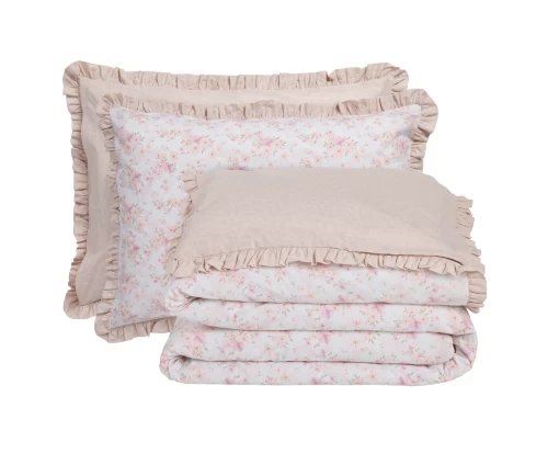 Σετ παπλωματοθήκη της σειράς Daily, με διακοσμητικό βολάν στις 3 πλευρές. Είναι από 100% Βαμβάκι με πυκνότητα ύφανσης 160TC, υποαλλεργικό, απαλό στην αφή, ανθεκτικό στη χρήση με επεξεργασία για εύκολο σιδέρωμα. Το σετ περιλαμβάνει μία παπλωματοθήκη 220x240εκ και δύο μαξιλαροθήκες 50x70+3,5εκ. Das home...makes your house a home!