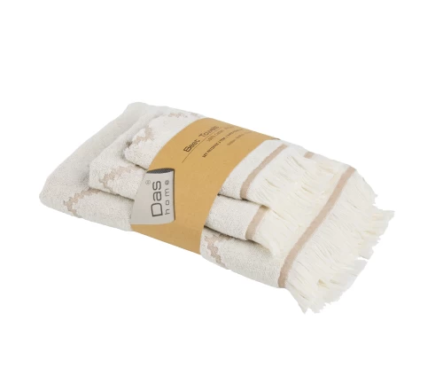 Σετ πετσέτες 3 τεμαχίων της σειράς Best, με κρόσια. Είναι από 100% βαμβάκι υψηλής ποιότητας, ιδιαίτερα απαλές, απορροφητικές και ανθεκτικές στην χρήση με βάρος 450gr/m2. Τα χρώματα που χρησιμοποιούνται είναι ανεξίτηλα και υποαλλεργικά. Το σετ αποτελείται από μία πετσέτα μπάνιου 70Χ140εκ., μία πετσέτα προσώπου 50Χ90εκ. και μία πετσέτα χεριών 30Χ50εκ. Das home...makes your house a home!