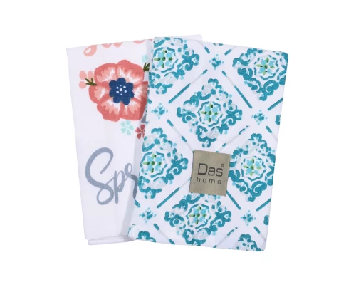 Δώστε χρώμα στη κουζίνα σας με το σετ ποτηρόπανα της Das home. Ιδιαίτερα εύχρηστα, ανθεκτικά στη χρήση και πολύ απορροφητικά από 100% βαμβάκι. Το σετ αποτελείται από δύο ποτηρόπανα με κέντημα σε διάσταση 40Χ65εκ.