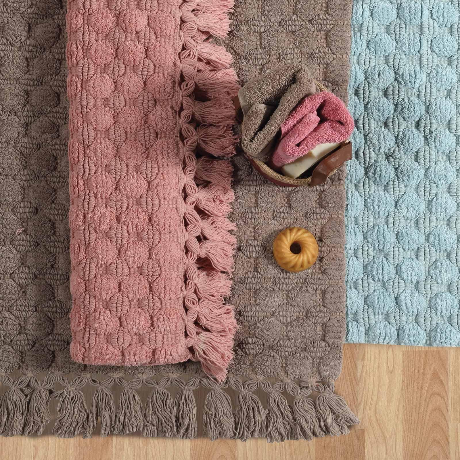 Ταπέτο μπάνιου Das home με ανάγλυφο σχέδιο και περιμετρική φάσα με κρόσια. Είναι απο 100% βαμβάκι, ιδιαίτερα απαλό, απορροφητικό και ανθεκτικό στη χρήση. Διατίθεται σε διάσταση 50x80cm. Das home...makes your house a home!