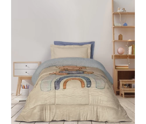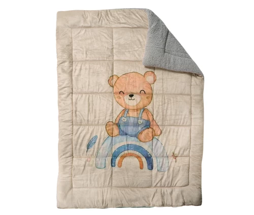 Κουβερτοπάπλωμα από ύφασμα fleece με παιδική παράσταση και γούνα sherpa στην πίσω πλευρά. Το ύφασμα είναι από 100% pol., ενώ το εσωτερικό του αποτελείται από ίνες hollowfibre. Είναι υποαλλεργικό, ιδιαίτερα ζεστό, απαλό στην υφή και ανθεκτικό στη χρήση. Έχει βάρος 650gr/m², με θερμιδική απόδοση 11TOG. Διατίθεται σε διάσταση 160Χ220εκ. Das home...makes your house a home!