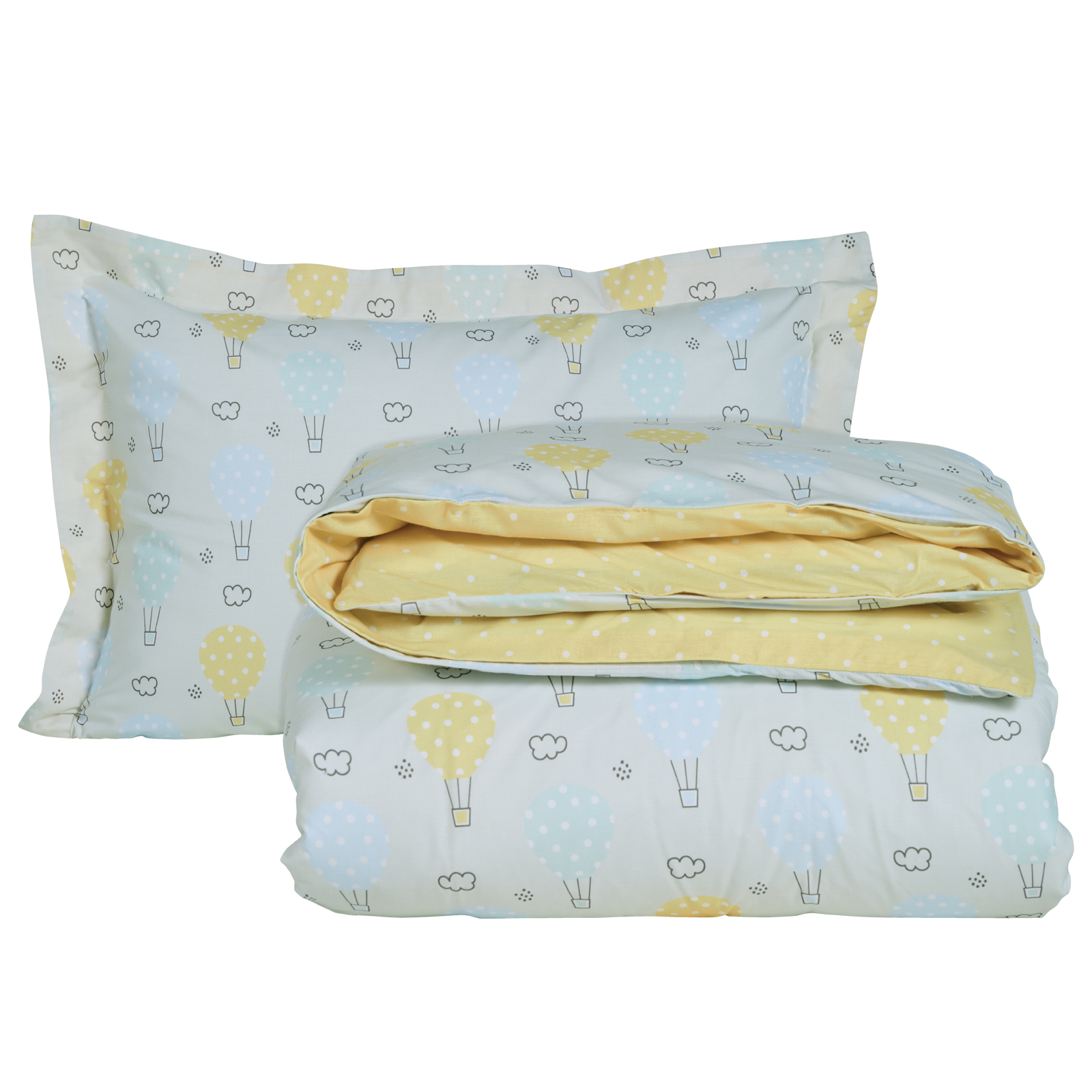 Σετ παπλωματοθήκη της σειράς Kid δύο όψεων. Είναι από 70% υποαλλεργικό βαμβάκι και 30% πολυεστέρα με πυκνότητα ύφανσης 150 TC, ιδιαίτερα απαλή στην αφή & ανθεκτική στη χρήση. Το σετ περιλαμβάνει μία παπλωματοθήκη διάστασης 160Χ240εκ και μία μαξιλαροθήκη 50Χ70+5εκ. Das home...makes your house a home!