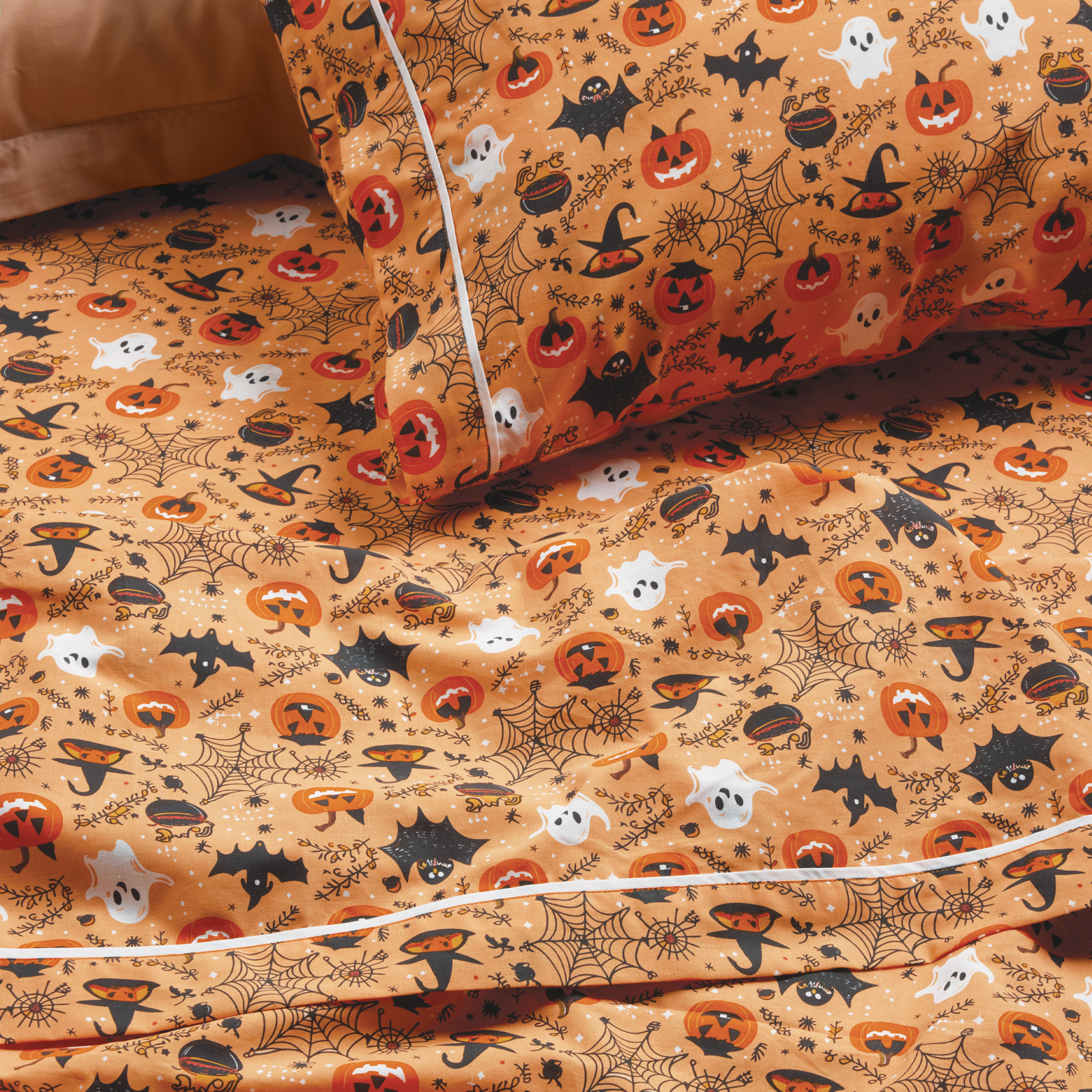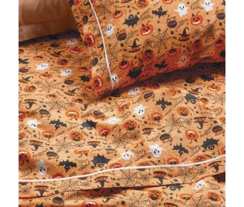 Σετ παπλωματοθήκη της σειράς Kid, σε σχέδιο Halloween. Είναι από 70% υποαλλεργικό βαμβάκι και 30% πολυεστέρα με πυκνότητα ύφανσης 150 TC, απαλή στην αφή, ανθεκτικό στη χρήση και με ειδική επεξεργασία για εύκολο σιδέρωμα. Το σετ περιλαμβάνει μία παπλωματοθήκη διάστασης 160Χ240εκ και μία μαξιλαροθήκη 50Χ70εκ. Das home...makes your house a home!