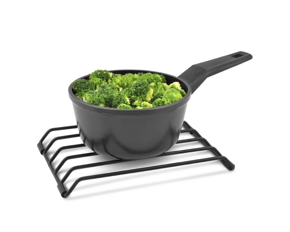 Κατασκευασμένη από ανθεκτικό μέταλλο, συνδυάζει μοντέρνο minimal design και πρακτική αντοχή στη θερμότητα, ενώ χάρη στη συμπαγή κατασκευή της παραμένει σταθερή και ασφαλής στη χρήση.