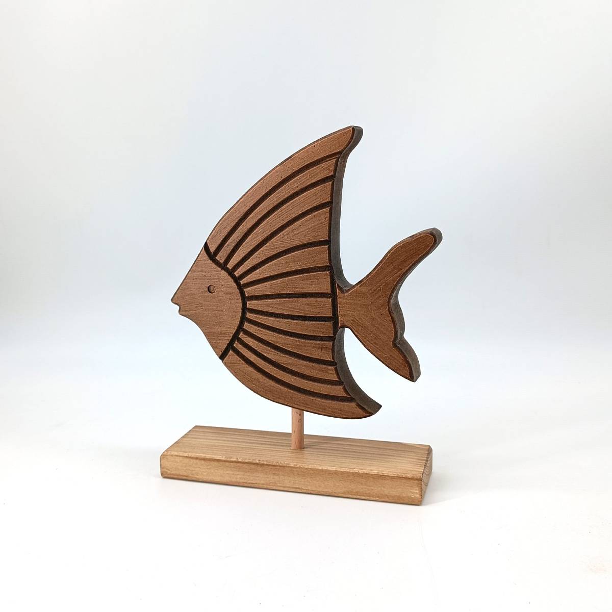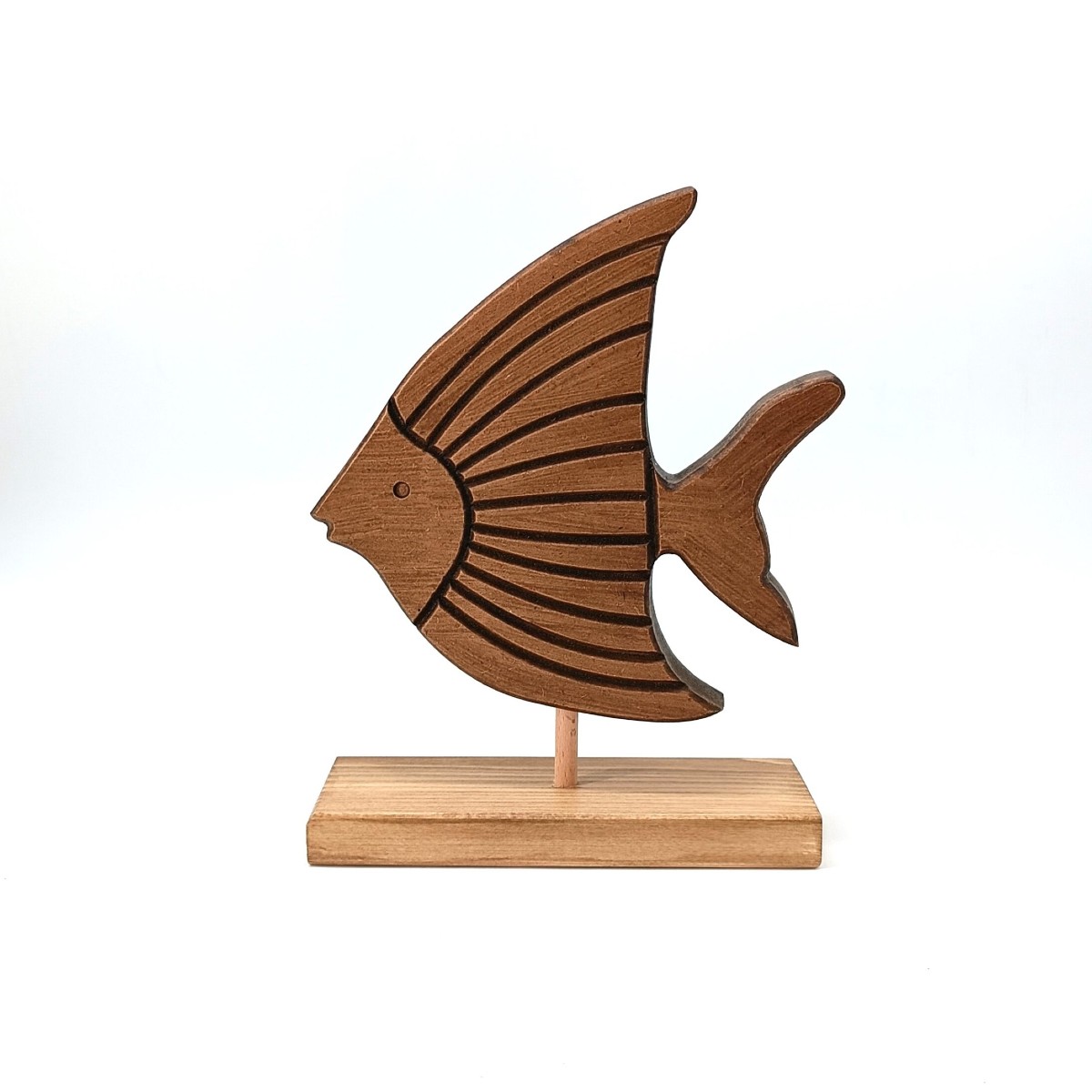 Το ξύλινο διακοσμητικό επιτραπέζιο ψάρι της KorresCraft είναι χειροποίητο προϊόν ελληνικής κατασκευής. Είναι φτιαγμένο από MDF και φυσικό ξύλο πεύκου, με τεχνική τεχνητής παλαίωσης και φυσική απόχρωση που αναδεικνύει τη υφή του ξύλου.