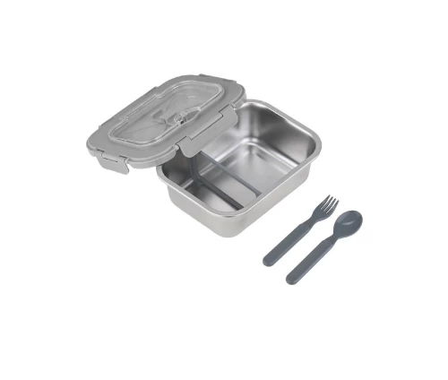 Διαθέτει μετακινούμενο διαχωριστικό που σας επιτρέπει να οργανώνετε δύο διαφορετικά φαγητά στο ίδιο δοχείο, ενώ το πλαστικό καπάκι με δακτύλιο σιλικόνης εξασφαλίζει απόλυτη στεγανότητα. Συνοδεύεται από πλαστικό κουτάλι και πιρούνι, ώστε να έχετε πάντα τα απαραίτητα μαζί σας.