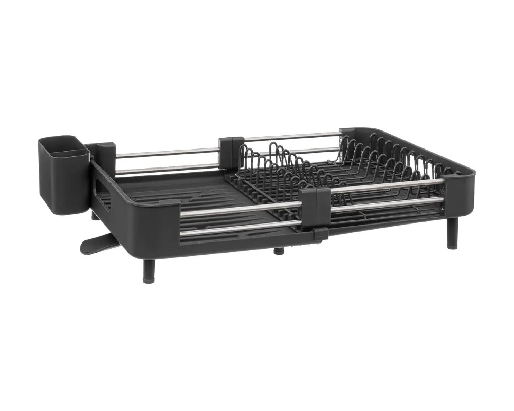 Η μαγεία της κρύβεται στον έξυπνο σχεδιασμό της. Χάρη στον επεκτεινόμενο μηχανισμό της, η πιατοθήκη μπορεί να μεγαλώσει ή να μικρύνει, προσαρμόζοντας το μήκος της από 35cm έως και 50cm! Τοποθετήστε την άνετα πάνω στον πάγκο, μέσα στον νεροχύτη ή πάνω από αυτόν, εξοικονομώντας πολύτιμο χώρο. Διαθέτει αποσπώμενη θήκη για μαχαιροπίρουνα και πρακτικό στόμιο αποστράγγισης που οδηγεί το νερό απευθείας στον νεροχύτη, διατηρώντας τον πάγκο σας πάντα στεγνό.