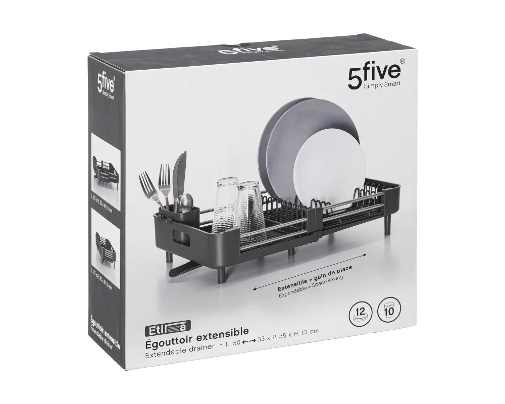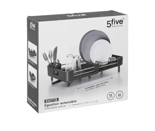 Η 5five αλλάζει τα δεδομένα στην οργάνωση της κουζίνας με την πρωτοποριακή επεκτεινόμενη πιατοθήκη της! Ένα έξυπνο και ευέλικτο αξεσουάρ, σχεδιασμένο για να ταιριάζει απόλυτα στις δικές σας ανάγκες και να κάνει το στέγνωμα των πιάτων πιο εύκολο από ποτέ.