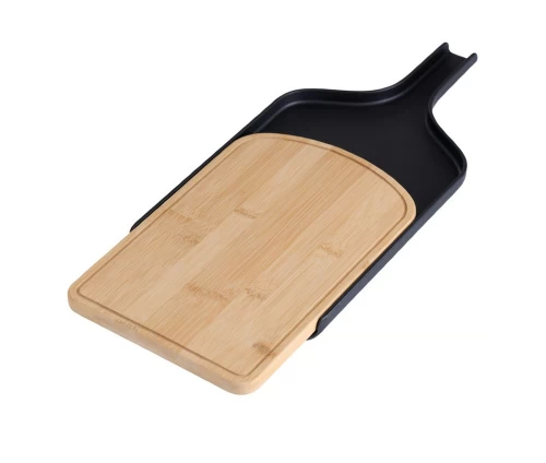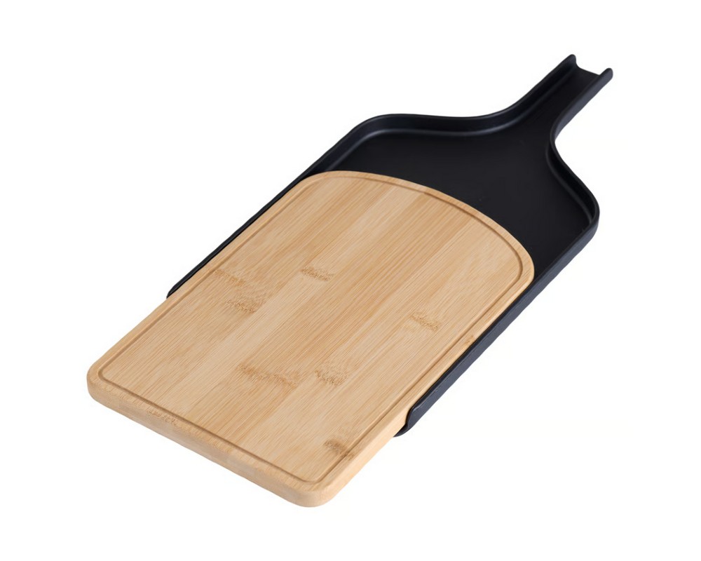Κατασκευασμένη από ανθεκτικό μπαμπού και πλαστικό tray, προσφέρει εργονομία και ευκολία στη χρήση. Το αποσπώμενο tray συγκεντρώνει τα κομμένα υλικά ή τα υγρά, διατηρώντας την επιφάνεια καθαρή και οργανωμένη.