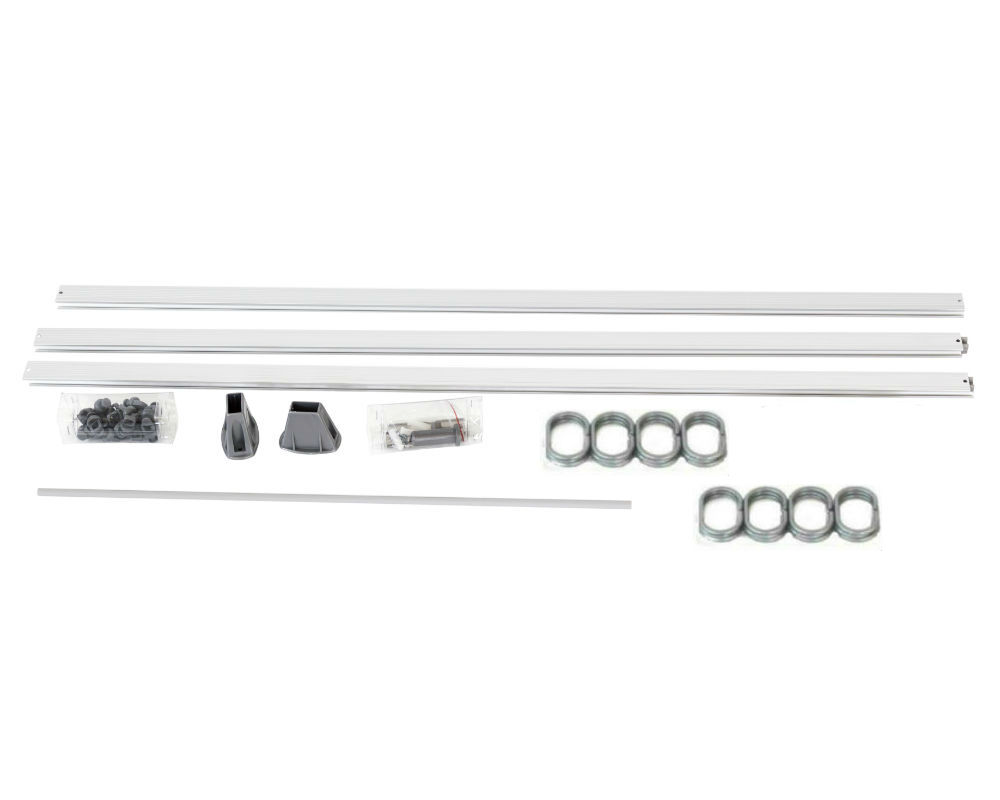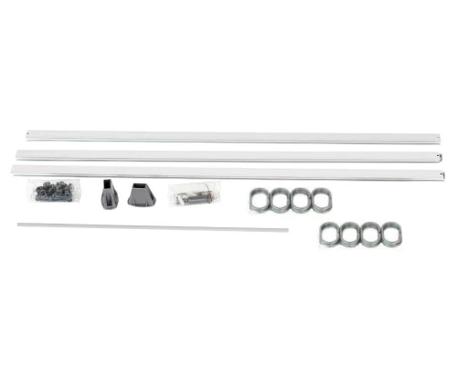 - Το σετ περιλαμβάνει: 3 ράβδους 1 μέτρου, αντηρίδα για στήριξη στην οροφή, γωνιακές ενώσεις, κρίκους και βίδες στήριξης