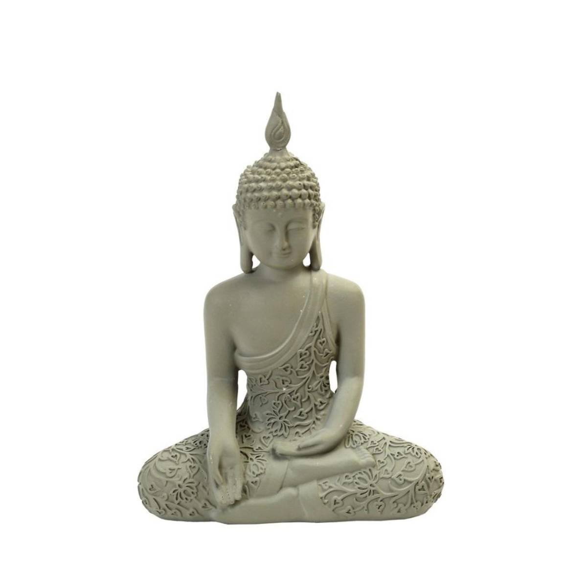Αυτή η εντυπωσιακή φιγούρα σε καθιστή στάση αποτελεί το ιδανικό στοιχείο για να δημιουργήσετε μια zen γωνιά στο σαλόνι, το γραφείο ή το υπνοδωμάτιό σας. Κατασκευασμένη από υψηλής ποιότητας πολυρεζίνη (polyresin), διακρίνεται για την ανθεκτικότητά της και τις περίτεχνες ανάγλυφες λεπτομέρειες στον μανδύα, που προσδίδουν μια μοναδική αισθητική στον χώρο.