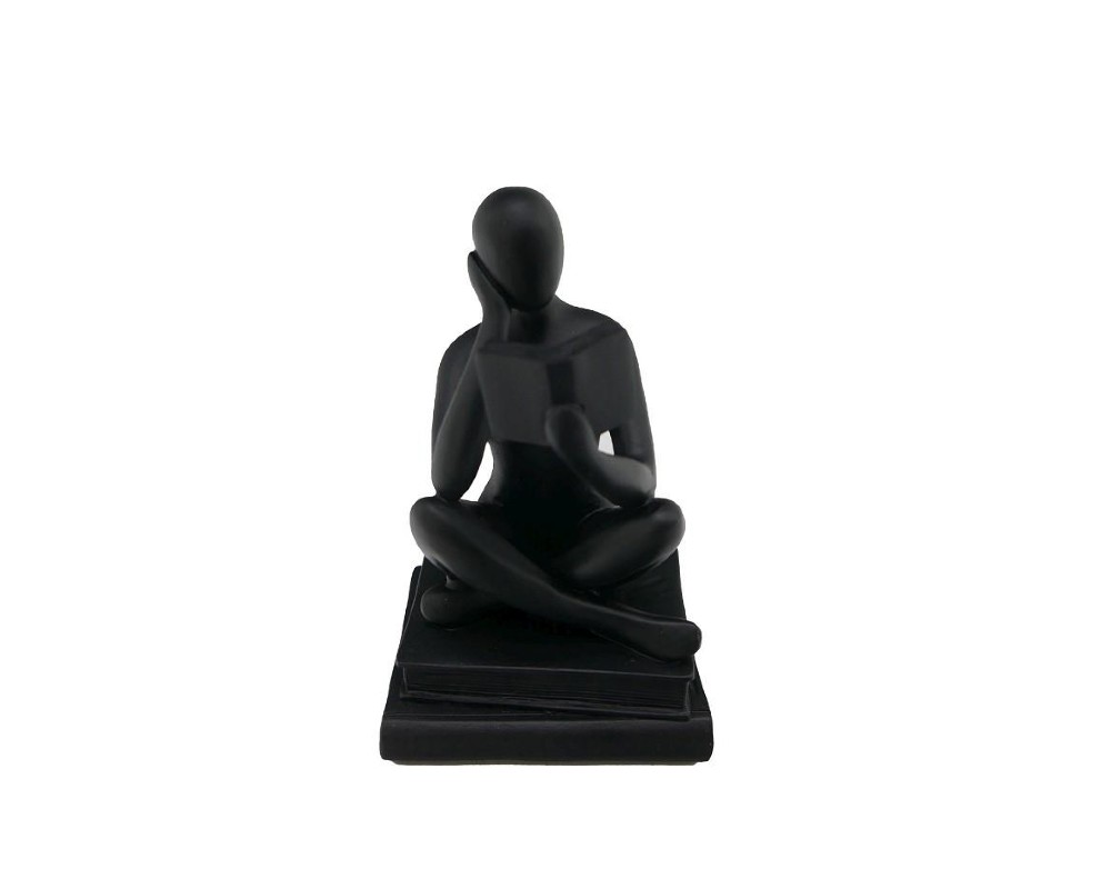 Το διακοσμητικό απεικονίζει μια αφηρημένη ανθρώπινη μορφή σε στάση βαθιάς σκέψης, καθισμένη σταυροπόδι πάνω σε βιβλία και απορροφημένη στην ανάγνωση. Η κατασκευή από υψηλής ποιότητας πολυρεζίνη (polyresin) και το κομψό, μαύρο ματ φινίρισμα, προσδίδουν στο αντικείμενο μια αίσθηση ηρεμίας και διανοητικής δύναμης. Αποτελεί ένα σύμβολο αγάπης για τη γνώση και την εσωτερική αναζήτηση.