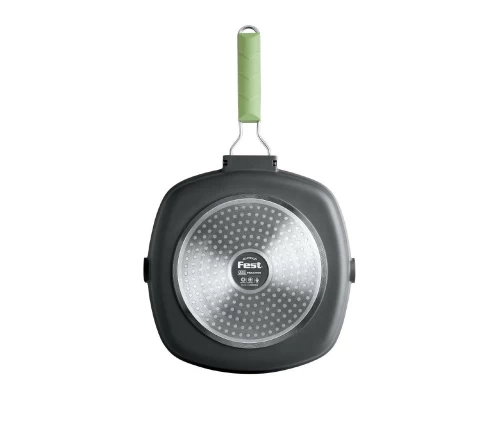 Τώρα μπορείτε να ψήσετε μεγαλύτερες ποσότητες και να ετοιμάσετε γεύματα για όλη την οικογένεια με μία κίνηση! Η τετράγωνη τηγανόσχαρα της Fest, στη γενναιόδωρη διάσταση των 28x28 εκ., είναι το ιδανικό σκεύος για να ψήσετε μεγάλες μπριζόλες, περισσότερα λαχανικά ή ολόκληρα ψάρια, δημιουργώντας τις αυθεντικές ρίγες του γκριλ με ευκολία.
