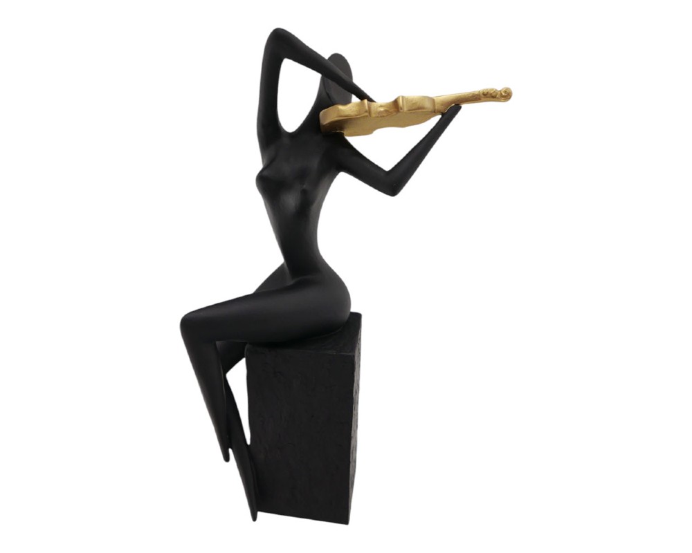 - Διακοσμητική πολυεστερική φιγούρα, που απεικονίζει γυναίκα να παίζει βιολί, καθιστή σε βάση