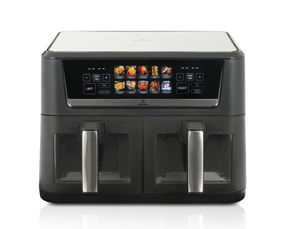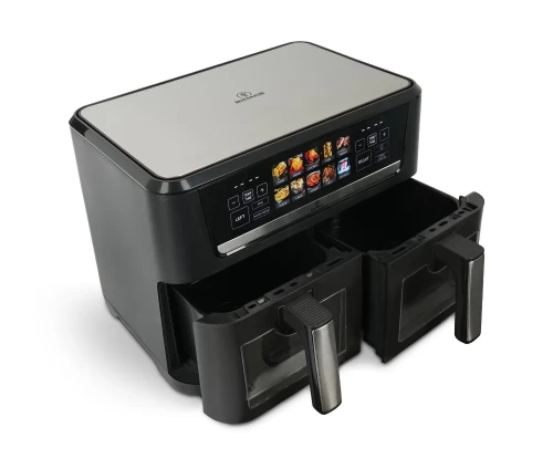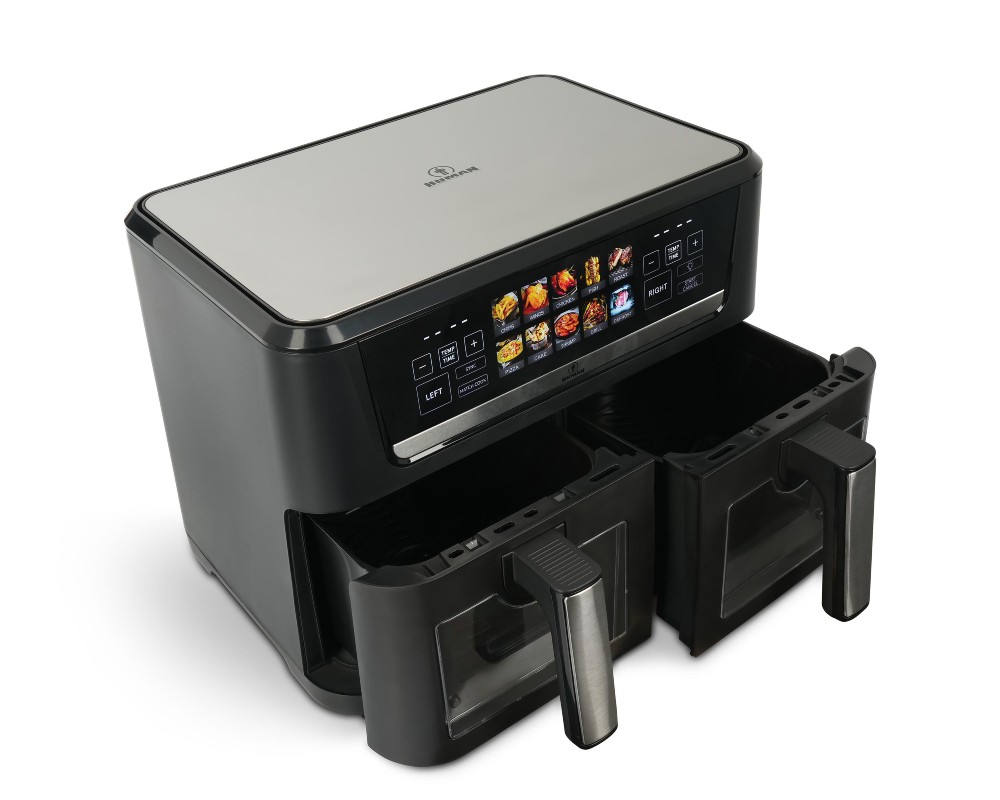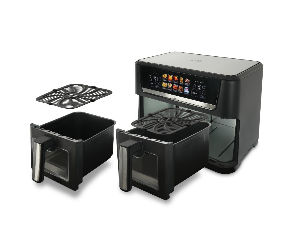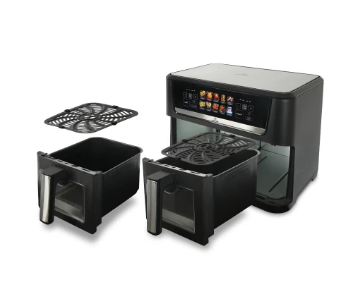 - Μοναδική φριτέζα αέρα 2 σε 1 με δύο διπλούς ανεξάρτητους κάδος