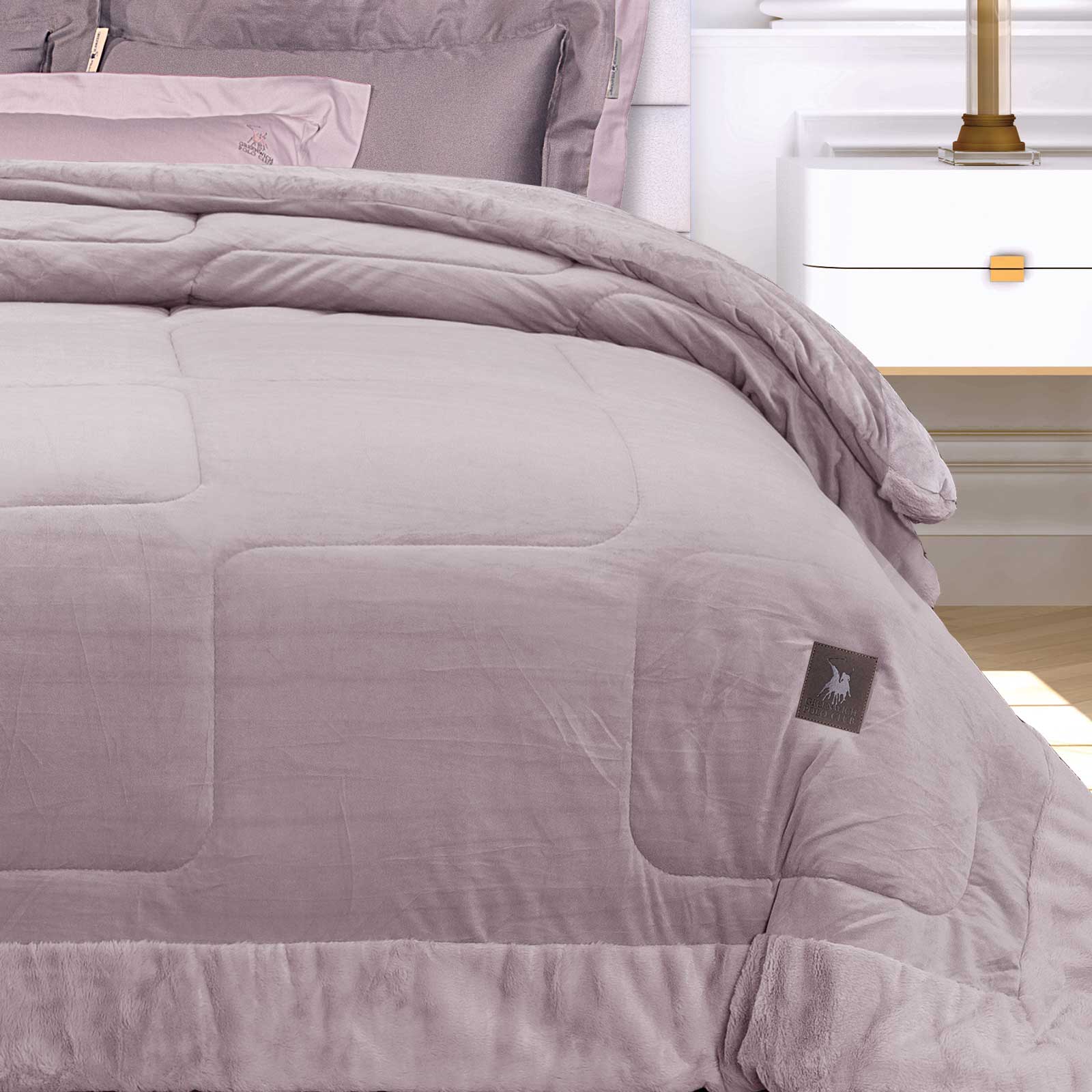 Κουβερτοπάπλωμα velvet του οίκου Greenwich Polo Club, με περιμετρική φάσα rabbit faux fur. To ύφασμα είναι από 100%pol. Το εσωτερικό του γέμισμα είναι από 100% hollowfiber και είναι ιδιαίτερα απαλό και ζεστό με θερμότητα 10.5 Tog και βάρος 700gr/m². Προσφέρεται στη διάσταση 240X250εκ. Επιλέξτε Greenwich Polo Club για να απολαύσετε ποιότητα, στυλ και πολυτέλεια.