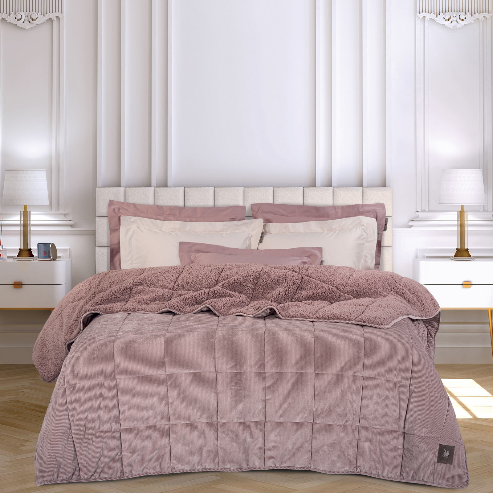 Κουβερτοπάπλωμα με sherpa του οίκου Greenwich Polo Club. Το πάνω μέρος είναι κοτλέ, 100% polyester, το κάτω μέρος είναι sherpa ενώ το εσωτερικό του γέμισμα είναι από 100% hollowfiber. Iδιαίτερα απαλό και ζεστό, με θερμότητα 11.5 Tog και βάρος 700gr/m². Προσφέρεται στη διάσταση 220X240εκ. Επιλέξτε Greenwich Polo Club για να απολαύσετε ποιότητα, στυλ και πολυτέλεια.