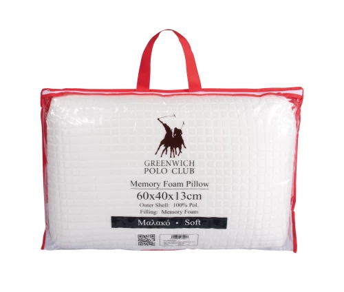 Μαξιλάρι Greenwich Polo Club με περιμετρικό piping, μαλακό, της σειράς Essential. Το εξωτερικό κάλυμμα είναι 100% πολυεστέρας, ενώ το εσωτερικό του είναι προηγμένης τεχνολογίας υλικό Memory Foam. Προσφέρει ιδανική στήριξη για το κεφάλι και τον αυχένα χαρίζοντας έτσι ξεκούραστο ύπνο. Διατίθεται σε διάσταση 60Χ40x13cm. Επιλέξτε Greenwich Polo Club και απολαύστε ποιότητα, στυλ και πολυτέλεια.