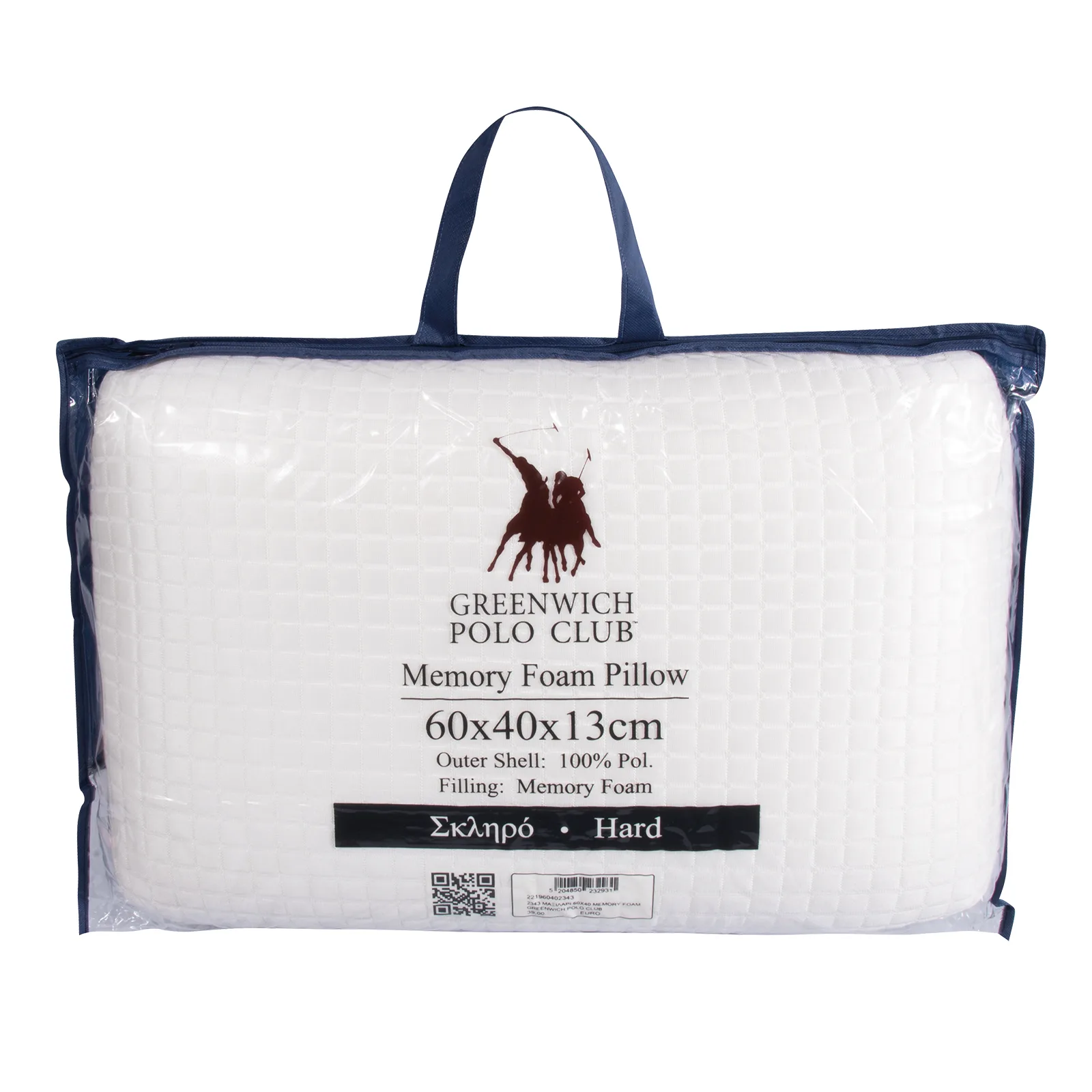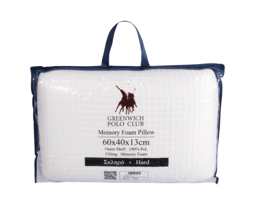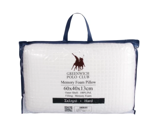Μαξιλάρι Greenwich Polo Club με περιμετρικό piping, σκληρό, της σειράς Essential. Το εξωτερικό κάλυμμα είναι 100% πολυεστέρας, ενώ το εσωτερικό του είναι προηγμένης τεχνολογίας υλικό Memory Foam. Προσφέρει ιδανική στήριξη για το κεφάλι και τον αυχένα χαρίζοντας έτσι ξεκούραστο ύπνο. Διατίθεται σε διάσταση 60Χ40x13cm. Επιλέξτε Greenwich Polo Club και απολαύστε ποιότητα, στυλ και πολυτέλεια.