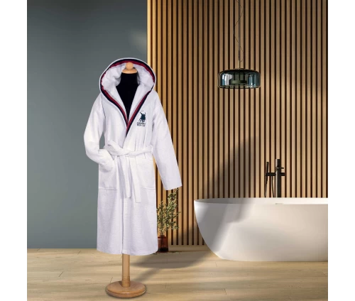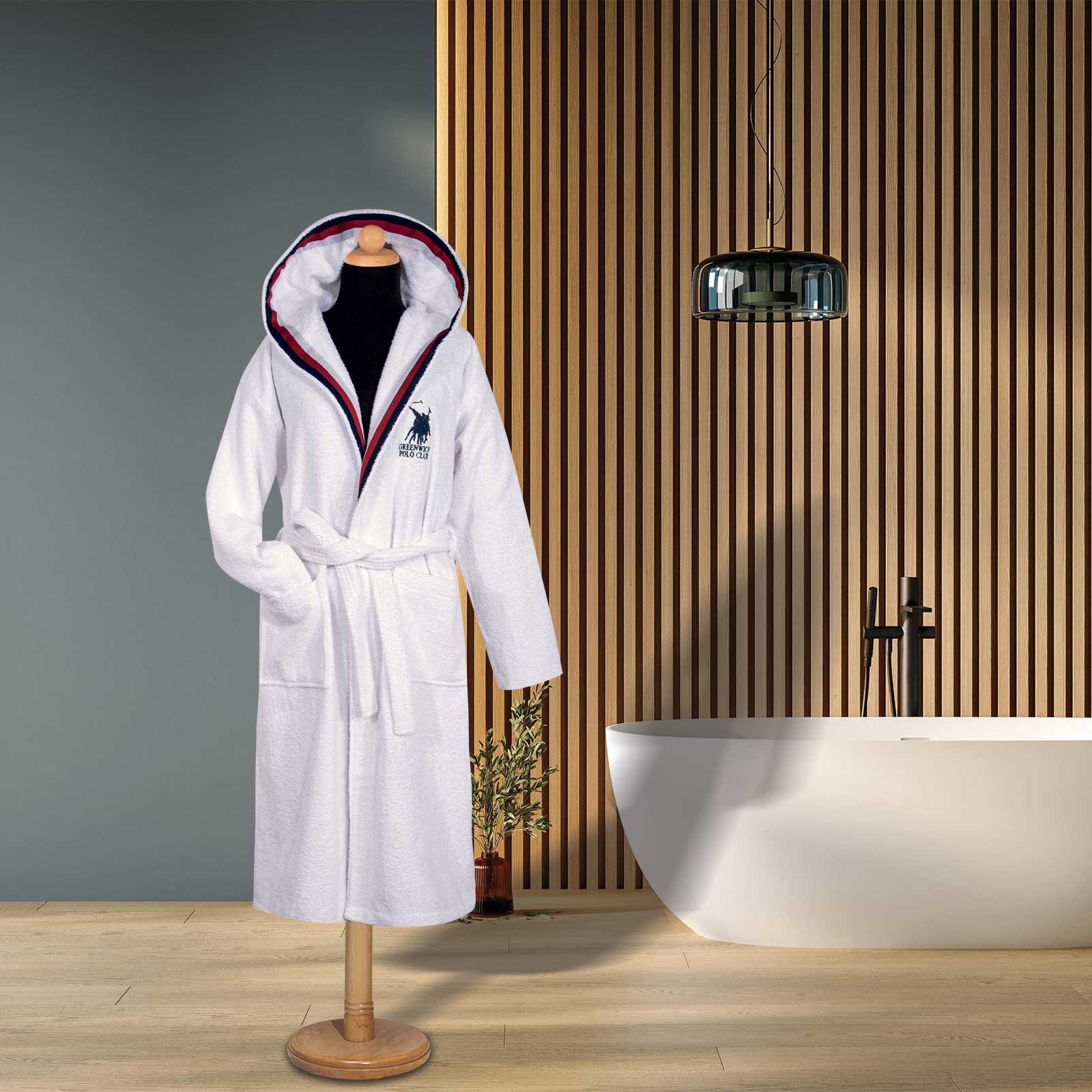 Ζακάρ μπουρνούζι της σειράς Essential, με διακοσμητική τρέσσα. Είναι από 100% βαμβάκι υψηλής ποιότητας, ιδιαίτερα απορροφητικό και ανθεκτικό στη χρήση, με βάρος 420gr/m2. Τα χρώματα που χρησιμοποιούνται είναι ανεξίτηλα και υποαλλεργικά. Διαθέσιμο σε μέγεθος Small. Επιλέξτε Greenwich Polo Club και απολαύστε ποιότητα, στυλ και πολυτέλεια.