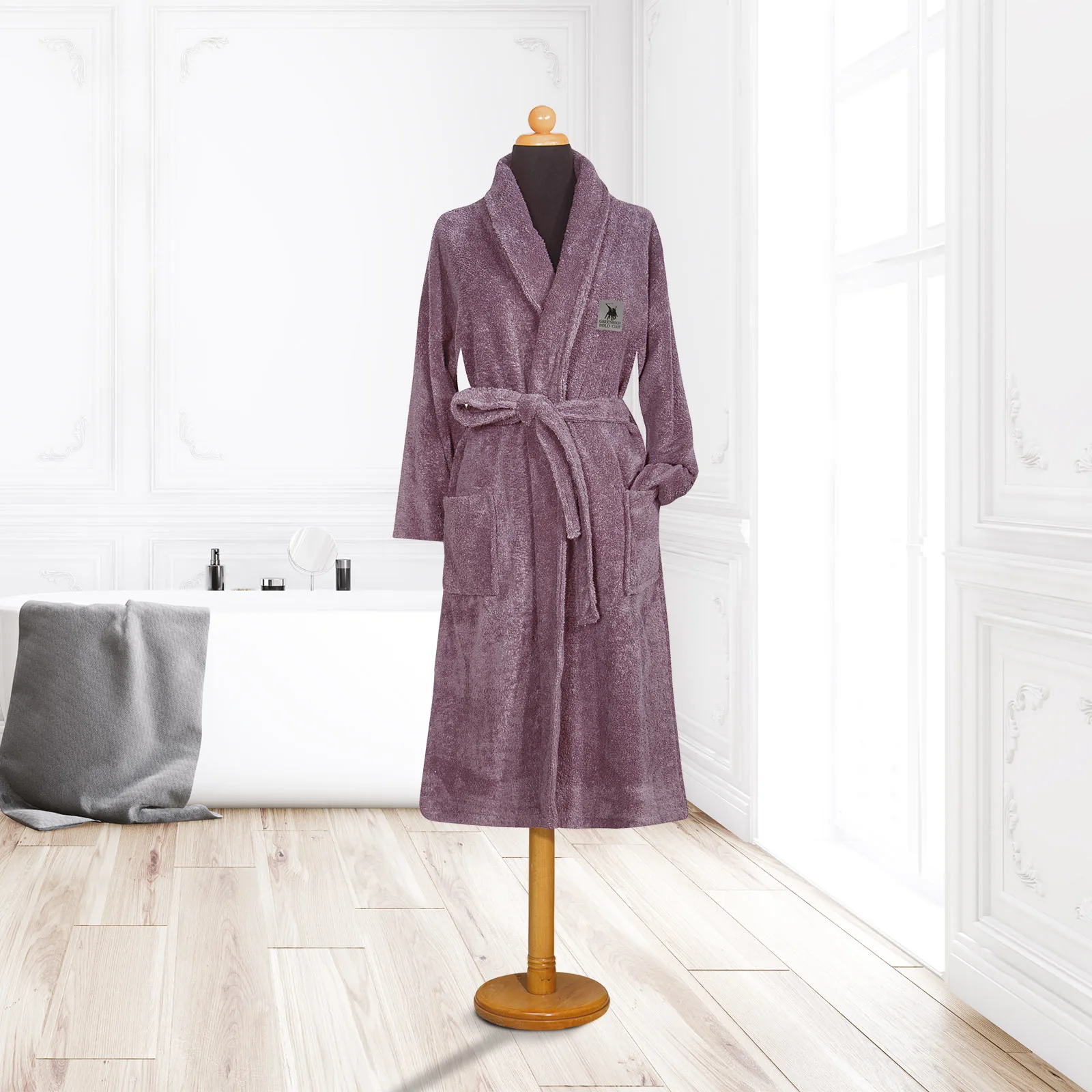 Μονόχρωμο μπουρνούζι Greenwich Polo Club essential. Είναι από 100% βαμβάκι υψηλής ποιότητας, ιδιαίτερα απορροφητικό και ανθεκτικό με βάρος 390gr/m2. Τα χρώματα που χρησιμοποιούνται είναι ανεξίτηλα και υποαλλεργικά. Επιλέξτε Greenwich Polo Club και απολαύστε ποιότητα, στυλ και πολυτέλεια.