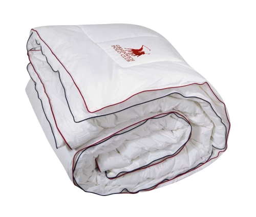 Πάπλωμα τεσσάρων εποχών σε διάσταση 220X240cm του οίκου Greenwich Polo Club. Το ύφασμα είναι από 100% υποαλλεργικό βαμβάκι 250TC, ενώ το εσωτερικό γέμισμα είναι από υποαλλεργική ίνα 100% microfibre με πουπουλένια αίσθηση. Αποτελείται από 2 ξεχωριστά παπλώματα διαφορετικής θερμιδικής απόδοσης που ενώνονται μεταξύ τους με τρουκς. Το πάπλωμα με την κόκκινη ραφή έχει απόδοση 4,5 TOG και είναι ιδανικό για το καλοκαίρι, το δεύτερο πάπλωμα με την μπλε ραφή με απόδοση 9 TOG είναι ιδανικό για την ?νοιξη και το Φθινόπωρο, ενώ όταν τα ενώσουμε με τα τρουκς σε ένα ενιαίο πάπλωμα θα έχουμε 13,5 TOG, ιδανική απόδοση για τις πολύ χαμηλές θερμοκρασίες του Χειμώνα. Επιλέξτε Greenwich Polo Club και απολαύστε ποιότητα, στυλ και πολυτέλεια.