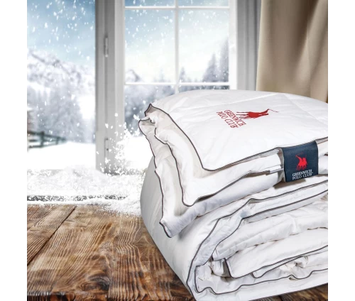 Πουπουλένιο πάπλωμα Premium του οίκου Greenwich Polo Club με θερμιδική απόδοση 12.5 TOG. Έχει εξωτερικό ύφασμα 100% cotton, πυκνότητας 400TC ενώ το εσωτερικό του είναι από 95% Siberian white Goose Down 300gr/m2. Είναι ιδιαίτερα απαλό, ζεστό και ελαφρύ, ενώ τα φυσικά του συστατικά σας εξασφαλίζουν ένα υγιεινό ύπνο. Προσφέρεται στη διάσταση 220X240cm. Επιλέξτε Greenwich Polo Club για να απολαύσετε ποιότητα, στυλ και πολυτέλεια. 95% πούπουλο νεοσσού χήνας - 5% φτεράκι