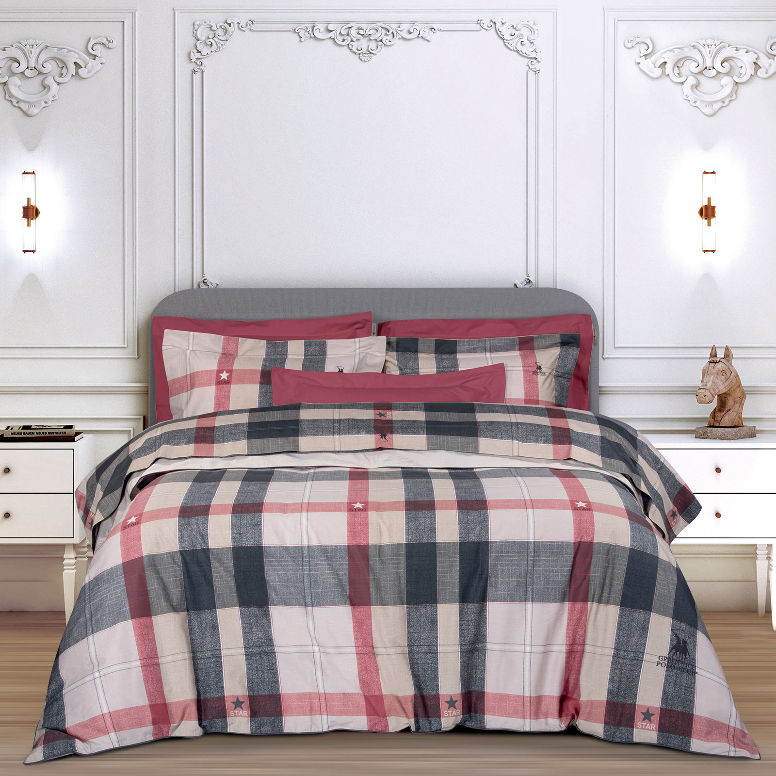 Σετ παπλωματοθήκη εμπριμέ, Greenwich Polo Club της σειράς Premium. Το ύφασμα του είναι από 100% υποαλλεργικό cotton-satin με πυκνότητα ύφανσης 210TC και με ειδική επεξεργασία για εύκολο σιδέρωμα. Το σετ αποτελείται από μία παπλωματοθήκη διαστάσεων 220Χ240εκ και δύο μαξιλαροθήκες 50Χ70+7εκ. Αυτό που χαρακτηρίζει την συλλογή είναι τα ιδιαίτερα σχέδια και οι χαρακτηριστικές αποχρώσεις. Επιλέξτε Greenwich Polo Club για να απολαύσετε ποιότητα, στυλ και πολυτέλεια.