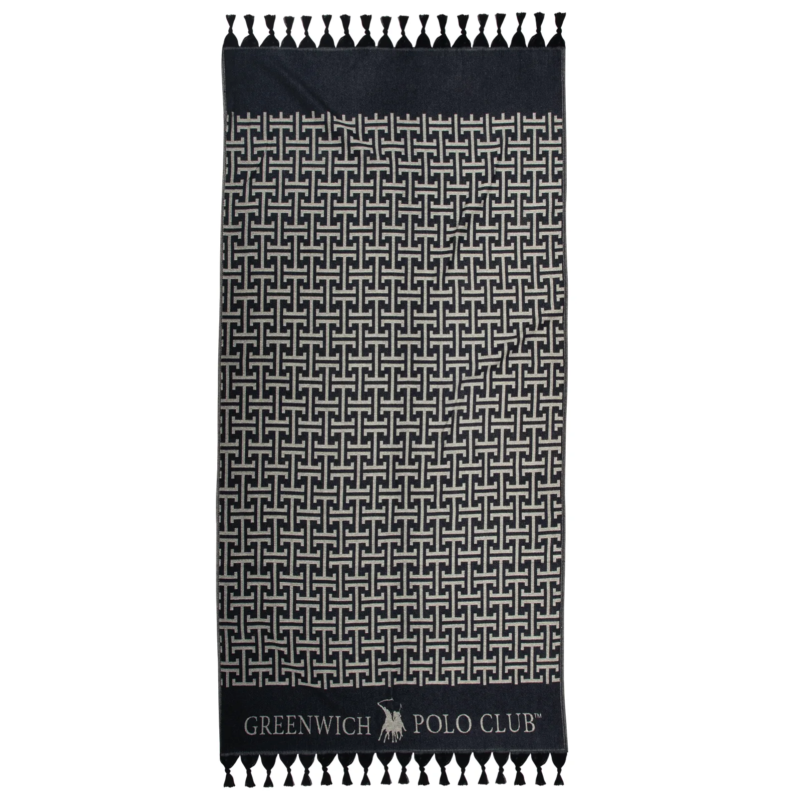 Πετσέτα-Παρεό Greenwich Polo Club σε διάσταση 90Χ170εκ. Είναι υποαλλεργική, απαλή, απορροφητική και ανθεκτική στη χρήση. Η σύνθεσή της είναι από 100% βαμβάκι σε ύφανση jacquard και βάρος 250gr/m2. Επιλέξτε Πετσέτες Θαλάσσης Greenwich Polo Club σε μοντέρνα σχέδια και χρώματα για τις εμφανίσεις σας στην παραλία.