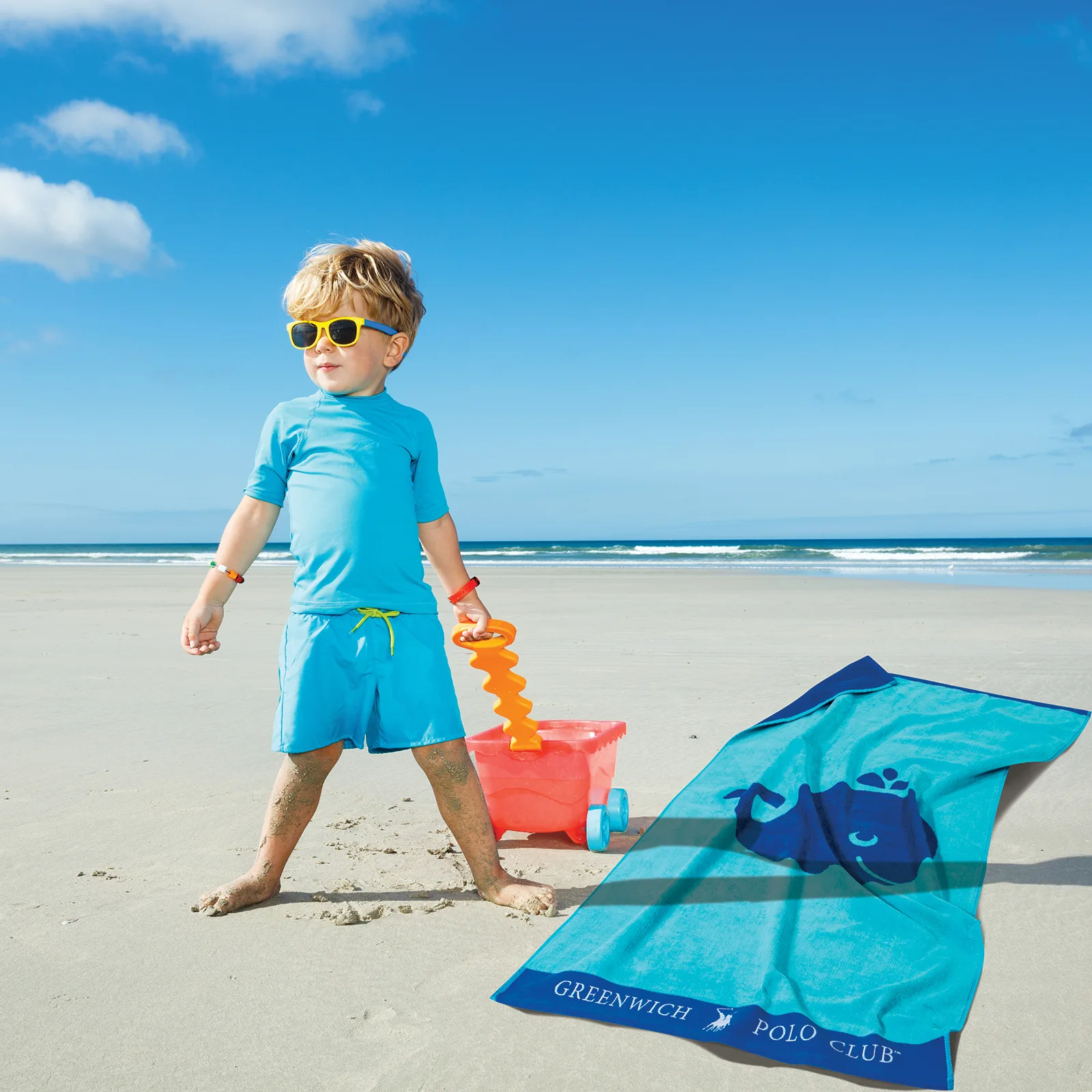 Πετσέτα Θαλάσσης Greenwich Polo Club Junior σε διάσταση 70Χ140εκ. Είναι υποαλλεργική, απαλή, απορροφητική και ανθεκτική στη χρήση. Η σύνθεσή της είναι από 100% βαμβάκι σε ύφανση jacquard και βάρος 420gr/m2. Επιλέξτε Πετσέτες Θαλάσσης Greenwich Polo Club σε μοντέρνα σχέδια και χρώματα για τις εμφανίσεις σας στην παραλία.
