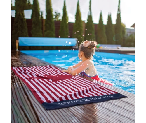 Πετσέτα Θαλάσσης Greenwich Polo Club Junior σε διάσταση 70Χ140εκ. Είναι υποαλλεργική, απαλή, απορροφητική και ανθεκτική στη χρήση. Η σύνθεσή της είναι από 100% βαμβάκι σε ύφανση jacquard και βάρος 450gr/m2. Επιλέξτε Πετσέτες Θαλάσσης Greenwich Polo Club σε μοντέρνα σχέδια και χρώματα για τις εμφανίσεις σας στην παραλία.